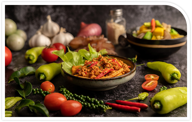 Garlic, ginger, clove, coriander leaf, curry (mixed), aloe vera, red chili, saffron, thyme, rosemary, vanilla, cinnamon, mustard seed, and more